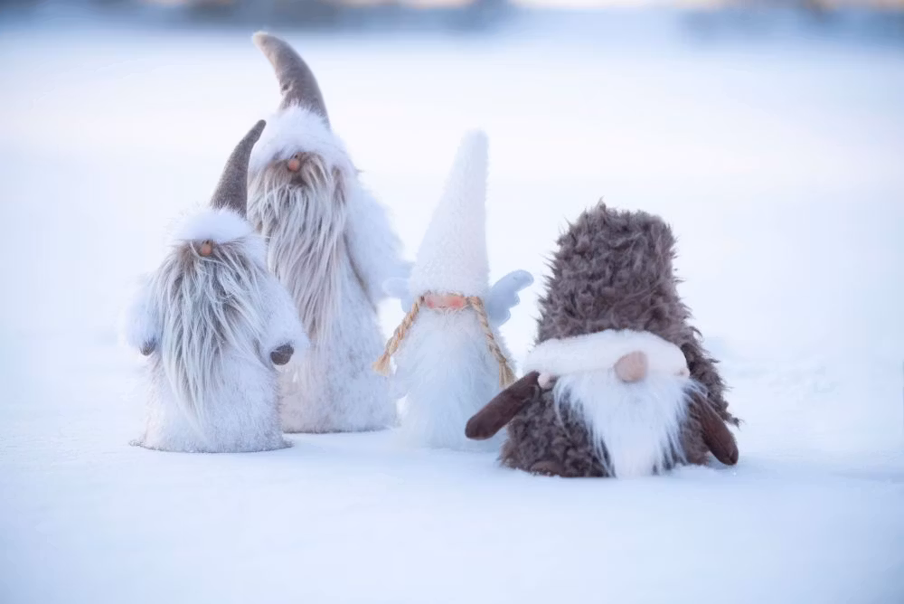 Lyxig tomte från Wikholm Form med fina pälsdetaljer. Finns i två storlekar: 11x10x33 och 15x12x46 cm. Fina att kombinera med varandra.