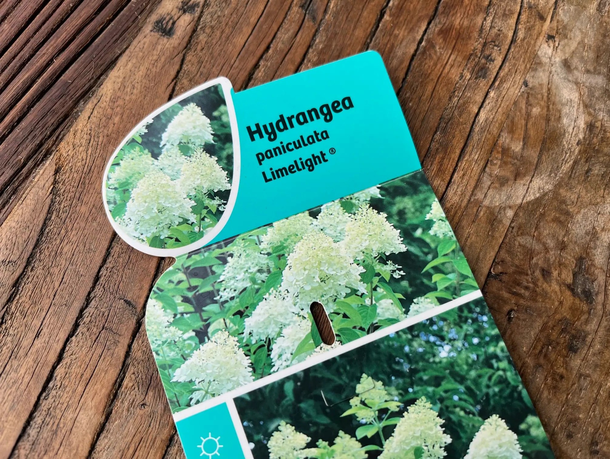 Innan du sätter i gång så kan det vara bra om du först gör en enkel växtlista på de växter du har i din trädgård. Du kanske har sparat växtetiketten när du köpte växten och då kan du utgå från den. Nedan ser du en plantetikett från en hortensia ”Limelight” som jag har inhandlat. Du ser det vetenskapliga namnet Hydrangea paniculata ”Limelight” och det är det du ska använda.